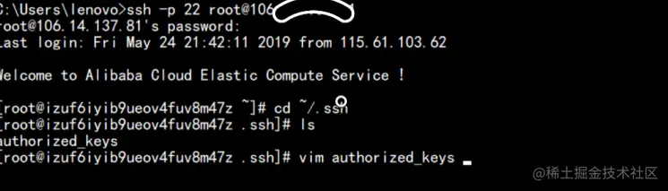 - 将生成的公匙内容粘贴到 authorized_keys 文件中。