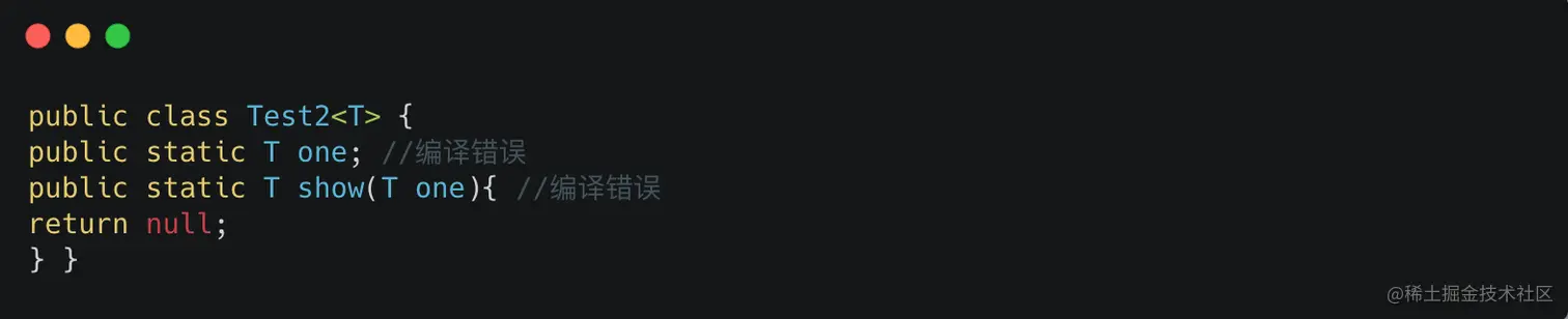 因为泛型类中的泛型参数的实例化是在定义泛型类型对象(例如 ArrayList)的时候指定的,而静态变量和静态方法不需要使用对象来调用。对象都没有创建,如何确定这个泛型参数是何种类型,所以当然是错误的。