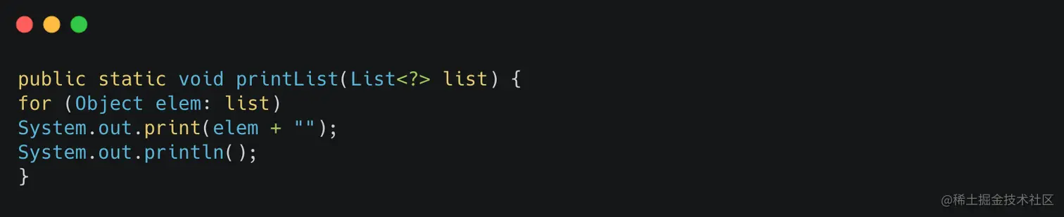 知道了通配符的上界和下界,其实也等同于知道了无界通配符,不加任何修饰即可,单独一个“?”。如List<?>,“?”可以代表任意类型,“任意”也就是未知类型。