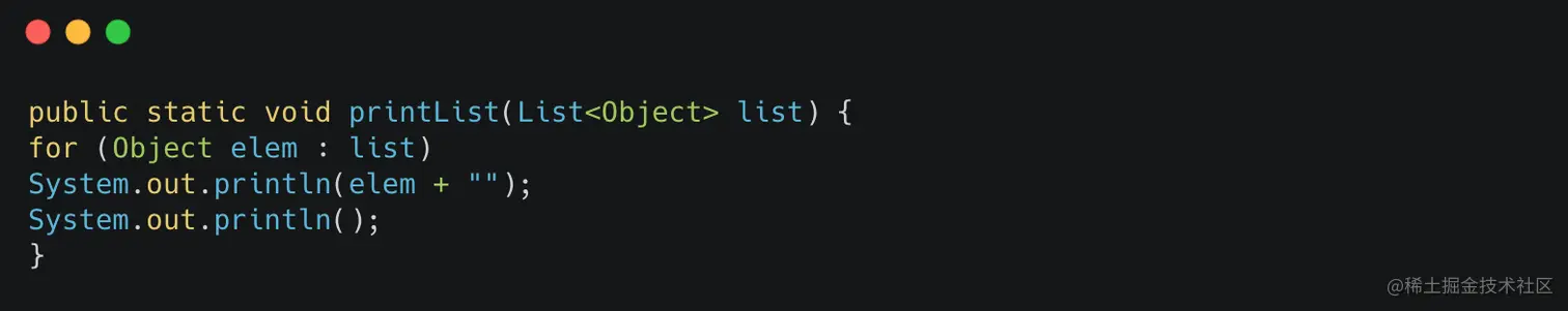 因此,我们得出结论:不能往 List<? extends T> 中添加任意对象,除了 null。