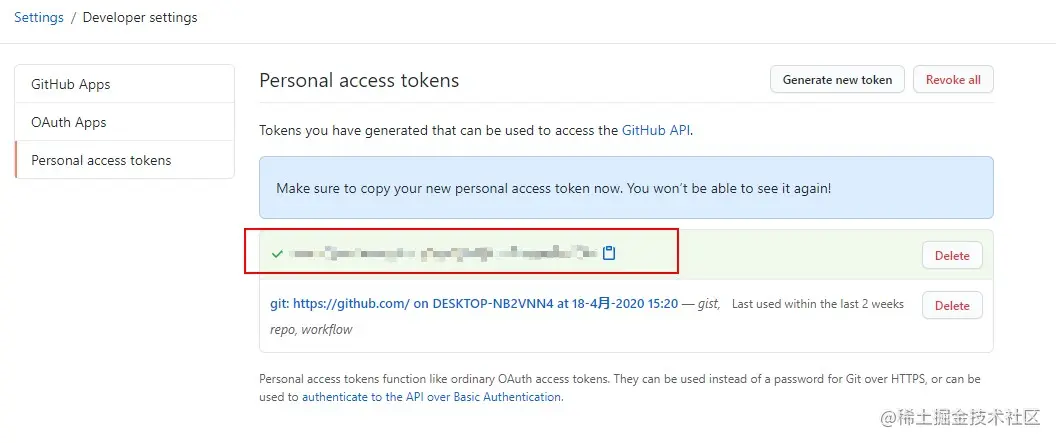 复制token,记到小本本里面,token只会出现一次,以后就不见了。