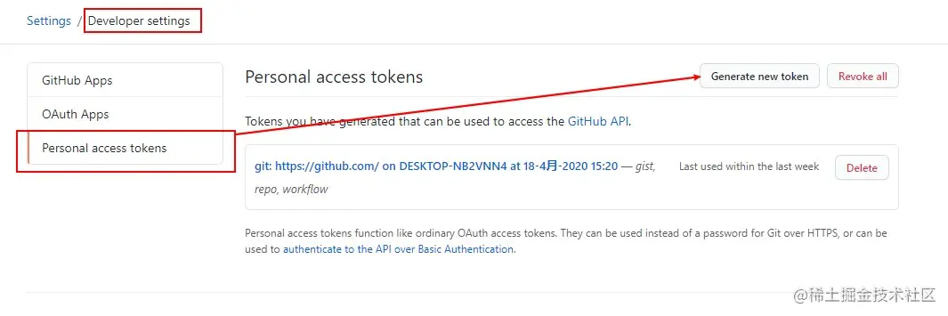进入github setting页面,在页面最下找到 Developer settings,点击Generate new token