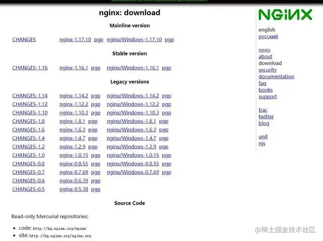 4、下载(我们以Nginx Stable Version为例子)。我们能看到Stable Version底下有三个栏目: