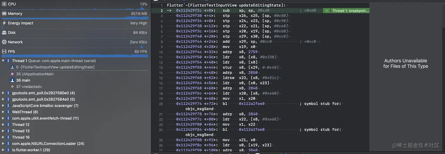 但是堆栈信息不明确,无法定位到具体问题,只能看到是在售前页发生了 crash,而且和 Flutter 有关,KERN_INVALID_ADDRESS说明是出现了僵尸对象,但和前端共同定位一番之后无果,只能暂时搁置。