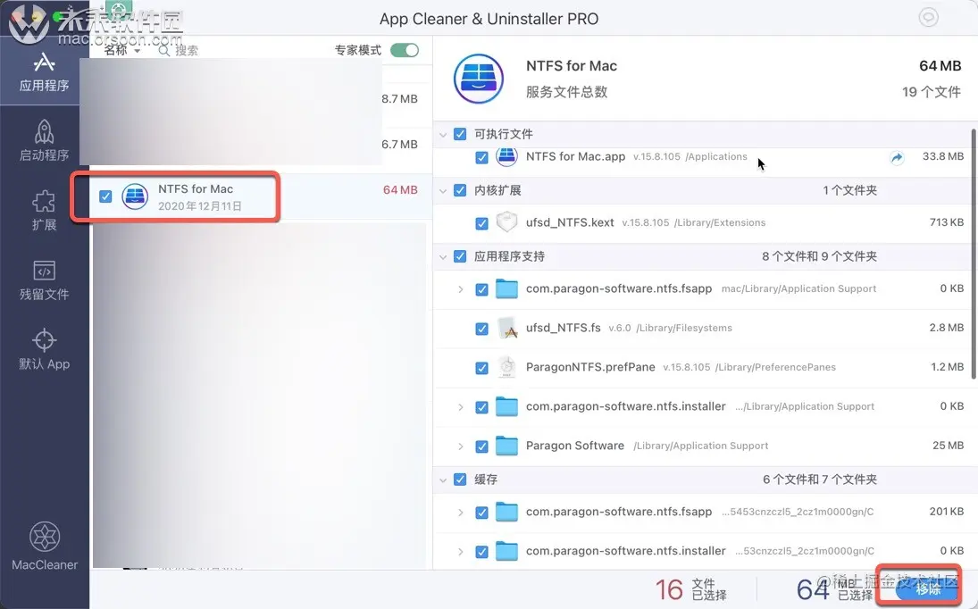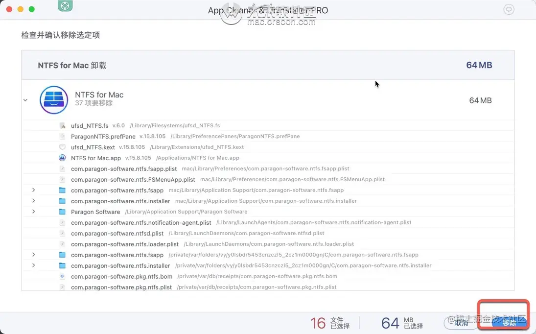 我们在软件中找到paragon ntfs for Mac,并进行移除,如图: