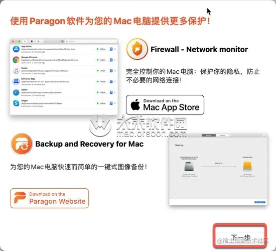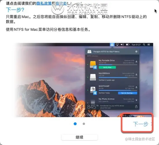 Paragon NTFS for Mac 15安装器将引导你完成安装所需步骤,请点击下一步,如图