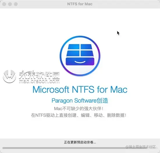 安装 Paragon NTFS for Mac 15正在努力安装中,请等待,如图