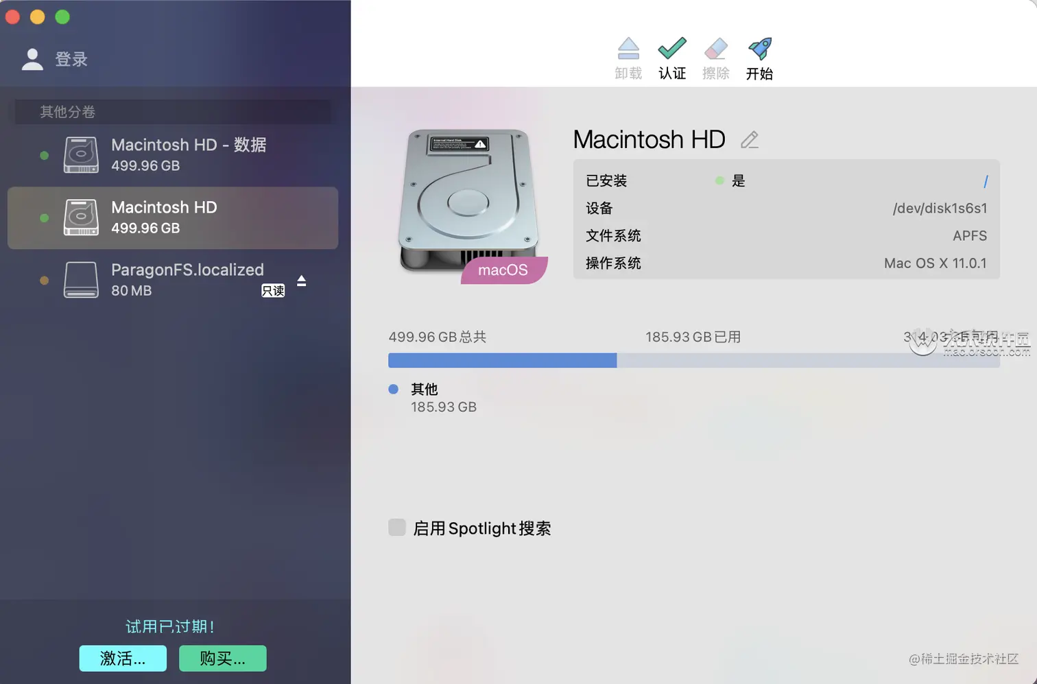 每次安装后皆有10天试用期,到期后使用App Cleaner & Uninstaller卸载,这样您的MacOS big sur 11上就可以永久使用paragon ntfs 15 mac中文版了。