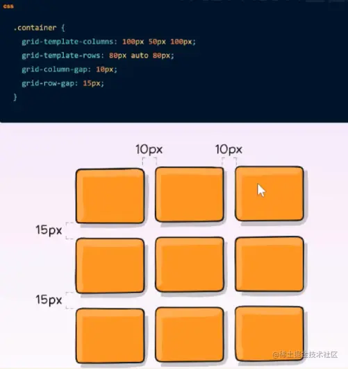 - grid-template-columns grid-template-rows 行和列