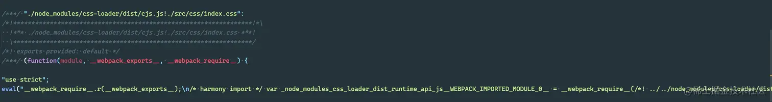 然后在入口 index.js 文件中引入 index.css 文件,之后执行打包操作。在打包生成的js文件中,我们就可以看到 index.css 中的内容: