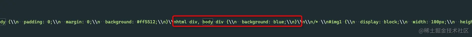 然后运行打包命令,打开打包后的js文件,我们可以看到sass的内容会被转换为普通的css内容: