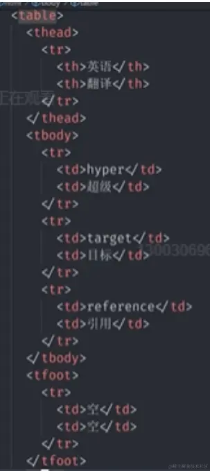 - table只能有三个子标签:thead, tbody, tfoot.如果直接写tr标签是错的, 但是浏览器会自动纠错, 帮我们补上了: