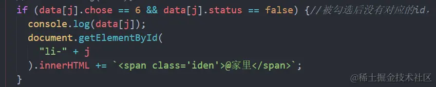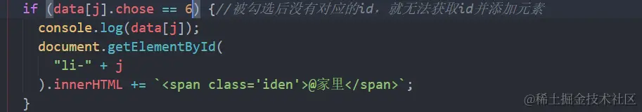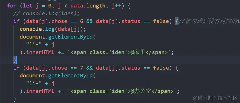 发现只判断了分类是6,勾选后分类也是6,就还添加标签,所有应该还要判断状态,当状态为未完成且分类为6就添加标签,否则不添加标签;一个报错后面有标签数据一起消失,是因为js执行到错误代码就不会往下执行,所有也就是接下来的数据也没有办法重新循环出来