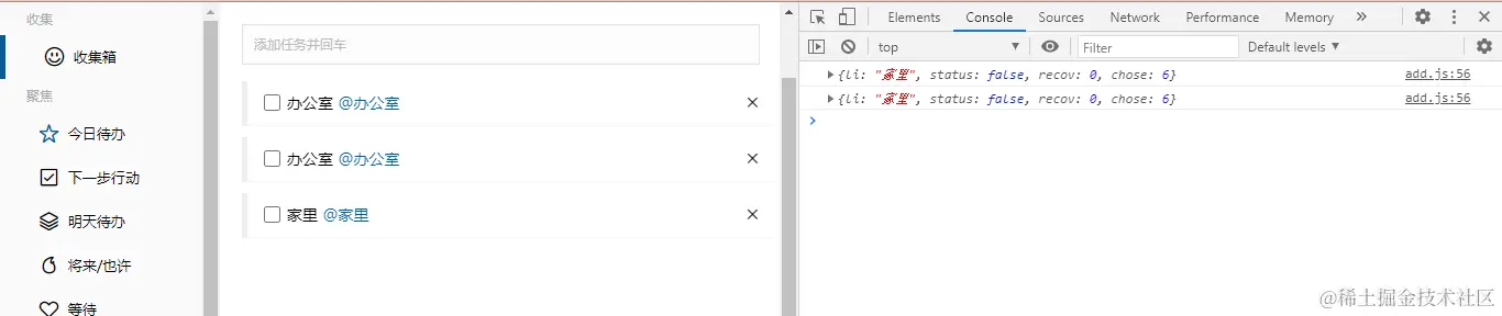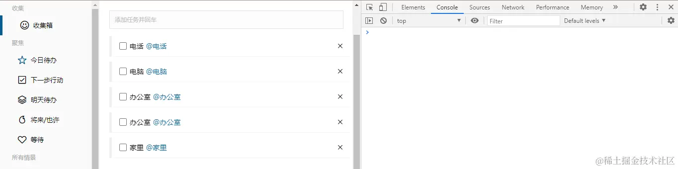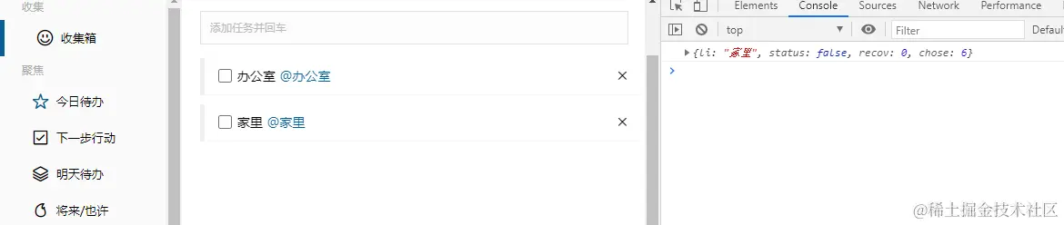 6.在家里、办公室...栏的子页面进行添加的事项,在收集箱中显示,带有标签,但在其各自的页面显示,则不会有标签