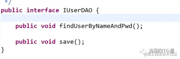 IUserDAO userDAO=(IUserDAO)Proxy.newProxyInstance(UserDAO.class.getClassLoader(), UserDAO.class.getInterfaces(),new InvocationHandler() { /** * 第一个参数:代理对象 * 第二个参数:当前要执行方法的一个封装 * 第三个参数:执行方法要传递的这个参数 */ @Override public Object invoke(Object proxy, Method method, Object[] args) throws Throwable { System.out.println("执行前添加的功能...."); Object result=method.invoke(new UserDAO(), args); System.out.println("执行后添加的功能...."); return result; } });