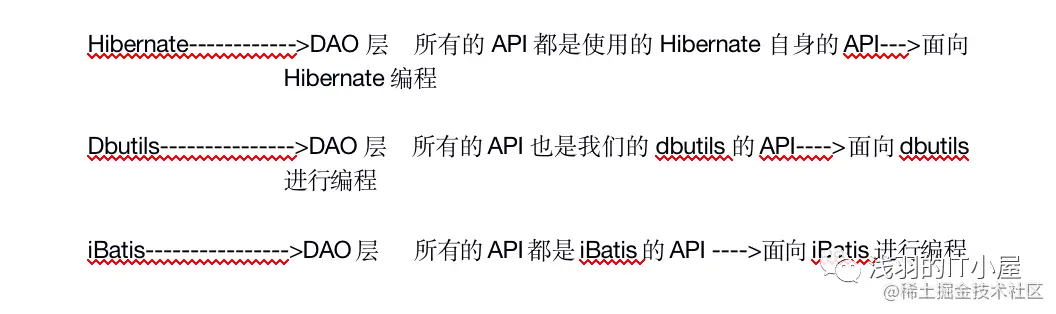 以前开发的时候我们的DAO层,要么使用Hibernate、要么使用iBatis、dbutils、toplink