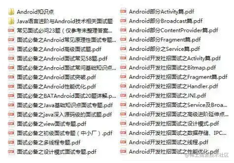 下面是有几位Android行业大佬对应上方技术点整理的一些进阶资料。有 Android架构视频+BATJ面试专题PDF+核心笔记等资料已上传到【GitHub】项目中大家可以自行取得。希望能够帮助到大家。