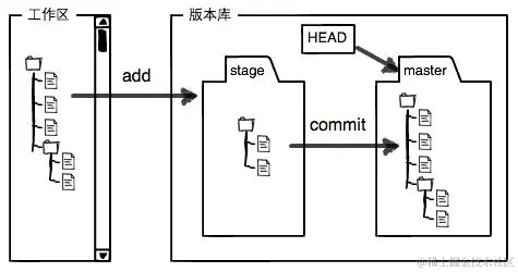 Git的版本库里存了很多东西,其中最重要的就是称为stage的暂存区,还有Git为我们自动创建的第一个分支master,以及指向master的一个指针叫HEAD。