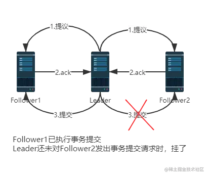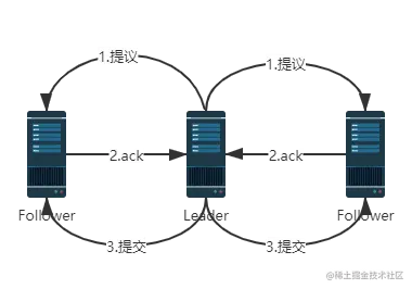 Follower收到提议后,写入磁盘,成功后返回一个ack 当Leader收到超过半数成功的ack后,leader就会发出提交命令,同时在本地提交该消息