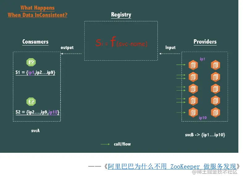 作为服务发现中间件,当自身宕机时,是否要考虑服务之间调用的可用性?如左图,如果注册中心挂了,那么原来svcA正常调用svcB的链路是否会受影响?