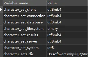 character_set_database:当前数据库使用的字符集,没有指定就使用character_set_server指定的
