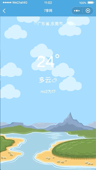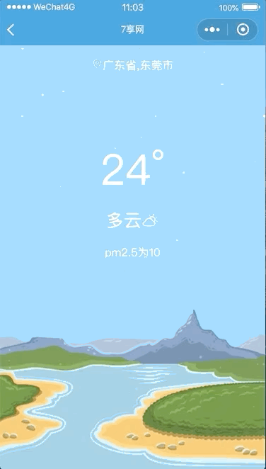 写到这里,我利用小程序的画布api实现了雨、云、雪、雾、晴朗、星星(流星)的天气效果,在这里我不一一展示了,感兴趣可以看我的代码仓库