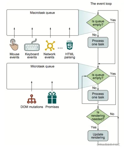 浏览器端事件循环中的异步队列有两种:macro(宏任务)队列和 micro(微任务)队列。