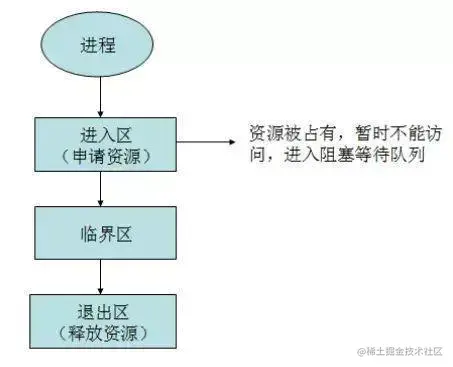 临界区用来表示一种公共资源或者说是共享数据,可以被多个线程使用。但是每一次,只能有一个线程使用它,一旦临界区资源被占用,其他线程要想使用这个资源,就必须等待。