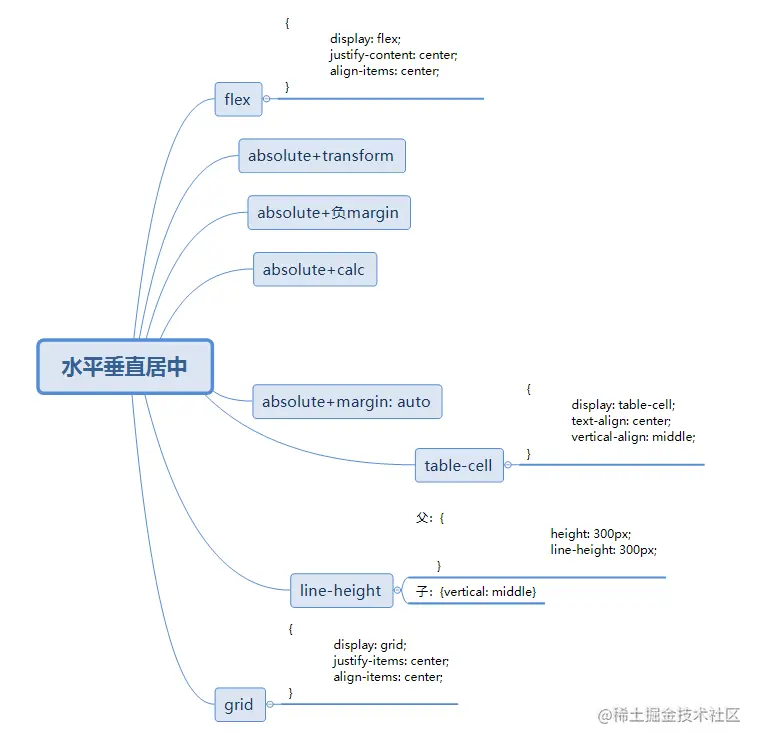 设置父元素 display:table-cell; 让父元素具有 td 元素的特点。同时利用 vertical-align: middle; 让行内元素或者行内块元素垂直居中。text-align: center; 让行内元素或者行内块元素水平居中。