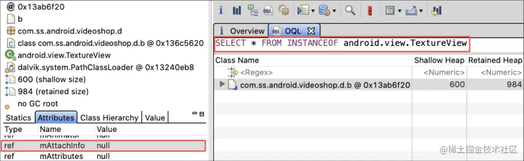 最后我们通过快照过滤出 crash时的 TextureLayer 实例,发现其 mAttachInfo 为 null,断定是在回调里执行 removeView 而最终导致 mLayer 被置空的,再通过这个 TextureLayer 实例逐层向上找到 mParent 为 null 的节点,最终找定位到被 remove 的上层节点,进而定位到了问题场景。