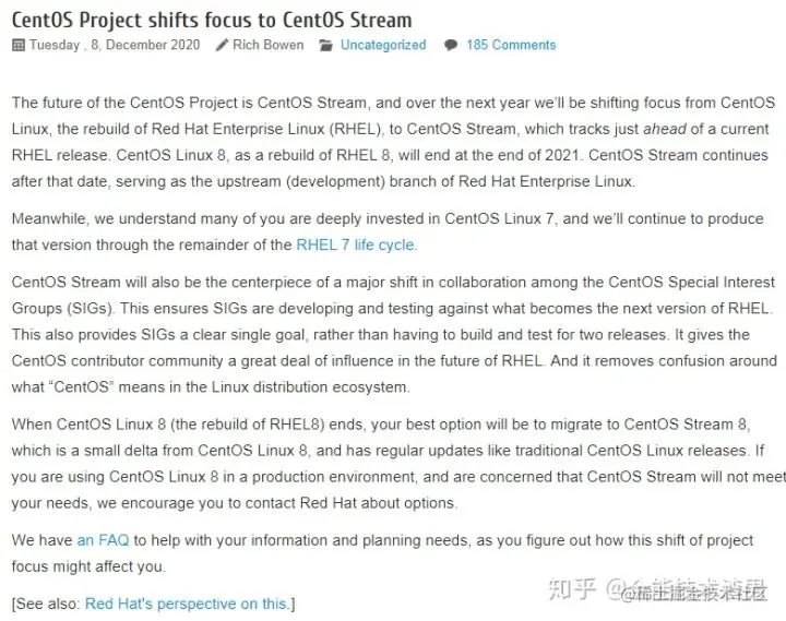 CentOS 最吸引人的地方在于它是 RHEL 的 rebuild,现在却毫无征兆地主动放弃这个“人设”,所以不难理解众多开发者对这个决策的不满。