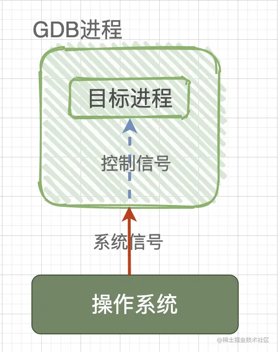 也就是说,如果没有gdb调试,操作系统与目标进程之间是直接交互的;如果使用gdb来调试程序,那么操作系统发送给目标进程的信号就会被gdb截获,gdb根据信号的属性来决定:在继续运行目标程序时是否把当前截获的信号转交给目标程序,如此一来,目标程序就在gdb发来的信号指挥下进行相应的动作。