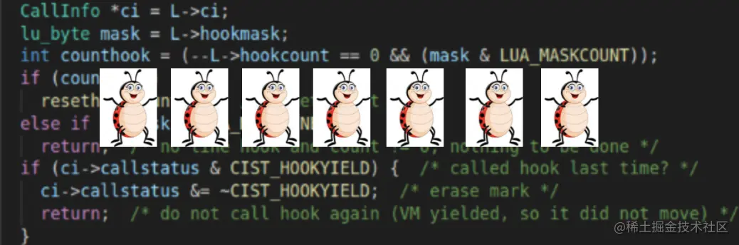 后面我在写LUA语言中的调试库时,会更深入、详细的讨论这个问题,毕竟LUA语言更小巧、简单。我也会把LUA代码中如何设置PC指针的代码部分给小伙伴演示一下,这样我们对于一门编程语言的内部实现就会有更好的理解和掌握,也可能会录一个视频,这样就能更好的讲解LUA语言中的内部细节。
