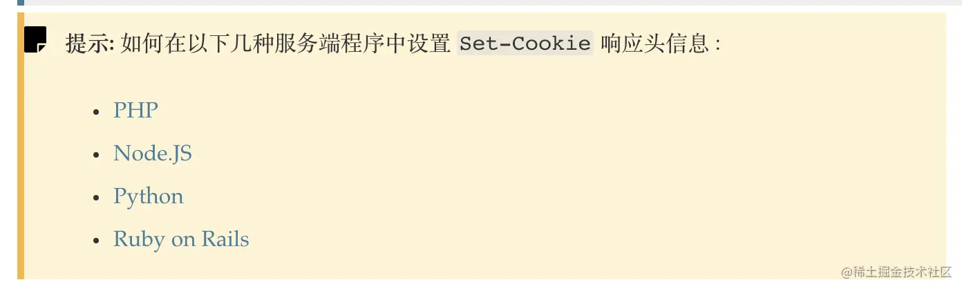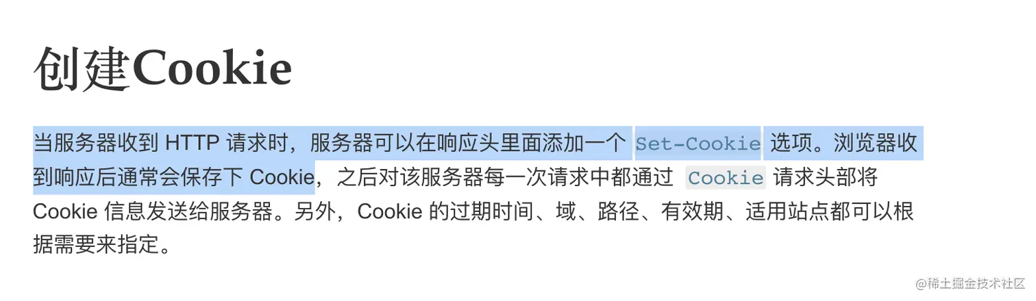 当服务器收到 HTTP 请求时,服务器可以在响应头里面添加一个 Set-Cookie 选项。浏览器收到响应后通常会保存下 Cookie