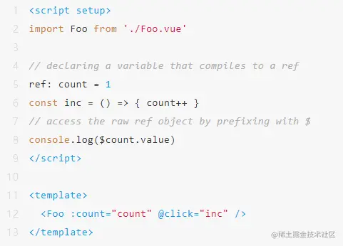 这就是 Vue 新提案实际在做的: 在 Vue SFC 文件里,提供语法糖,优化编程体验。