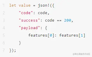 如上,rust 的 serde_json 提供了 json! macro,让开发者可以在 rust 代码里编写 json。