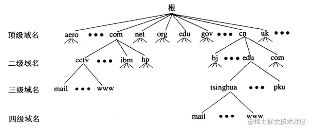 - 顶级域名服务器负责管理在该顶级域名服务器注册的二级域名