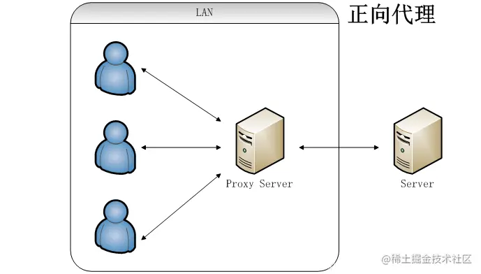 局域网中的电脑用户想要直接访问网络是不可行的,只能通过代理服务器来访问,这种代理服务就被称为正向代理。