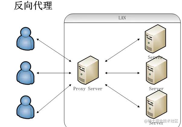 客户端无法感知代理,因为客户端访问网络不需要配置,只要把请求发送到反向代理服务器,由反向代理服务器去选择目标服务器获取数据,然后再返回到客户端,此时反向代理服务器和目标服务器对外就是一个服务器,暴露的是代理服务器地址,隐藏了真实服务器IP地址。