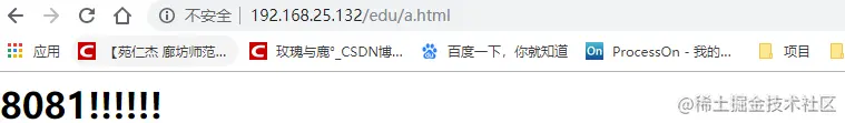 在8081的tomcat的webapps文件夹下新建edu文件夹和a.html文件,填写内容为8081!!!!