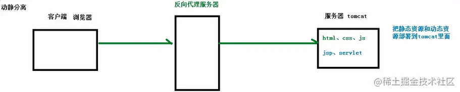 把动态请求和静态请求分开,不是讲动态页面和静态页面物理分离,可以理解为Nginx处理静态页面,Tomcat处理动态页面。