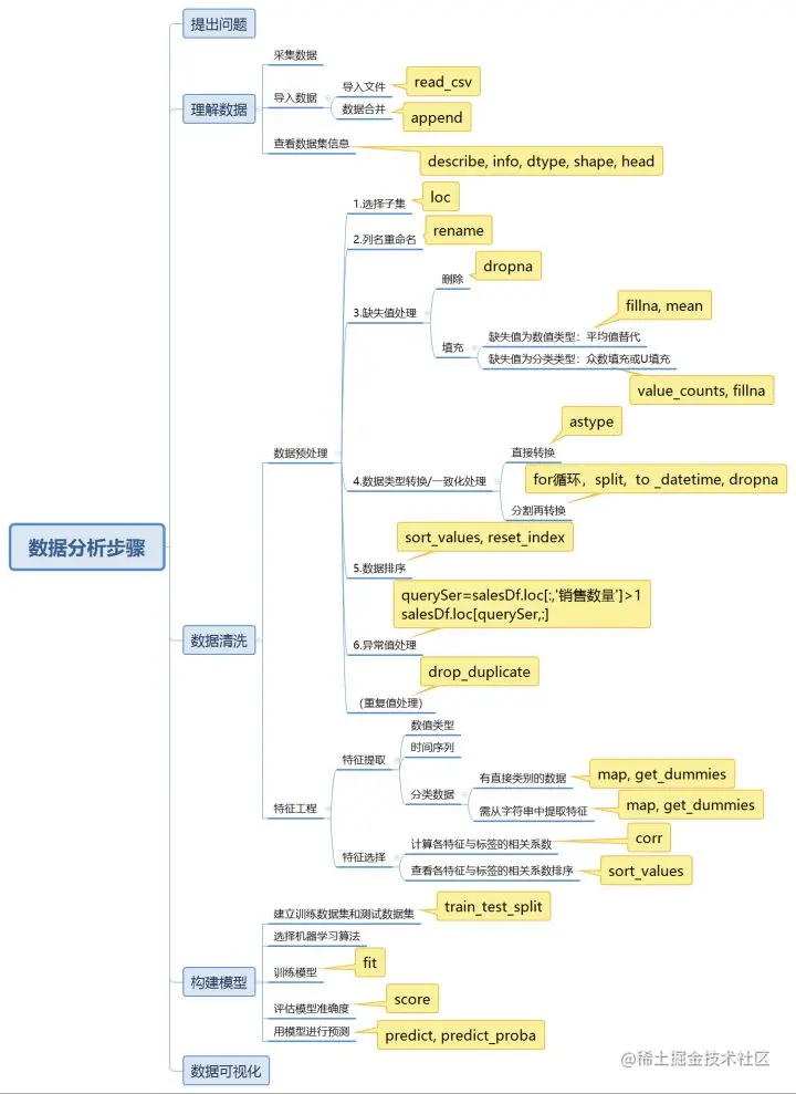 Python数据分析五大步骤 阿巴学python 2020-12-14 115 阅读1分钟 不管是用excel还是用Python, 数据分析过程都遵循一样的套路。在学习完Python的基础知识之后,我把用Python进行数据分析过程中涉及的函数都标注了出来以方便后来回忆查看。 文章转载 作者:不认输的猪猪女孩 来源:知乎