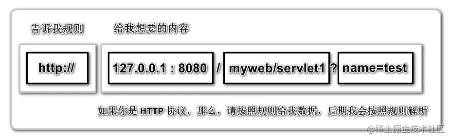 http 表示要通过 HTTP 协议来定位网络资源;host 表示合法的 Internet 主机域名或者 IP 地址;port 指定一个端口号,为空则使用缺省端口 80;abs_path 指定请求资源的 URI;如果 URL 中没有给出 abs_path,那么当它作为请求 URI 时,必须以“/”的形式给出,通常这个工作浏览器自动帮我们完成。
