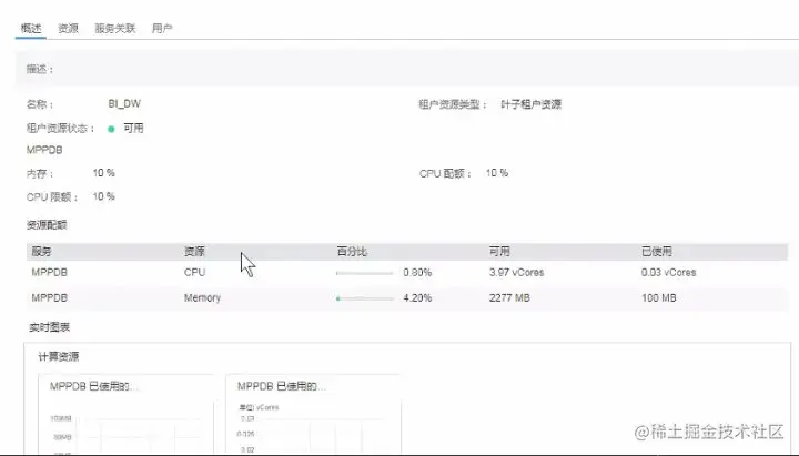 可以看到图中给这个租户或者说给这个用户所在的资源池配置了10%的内存配额,一共是2277MB,即2G左右。