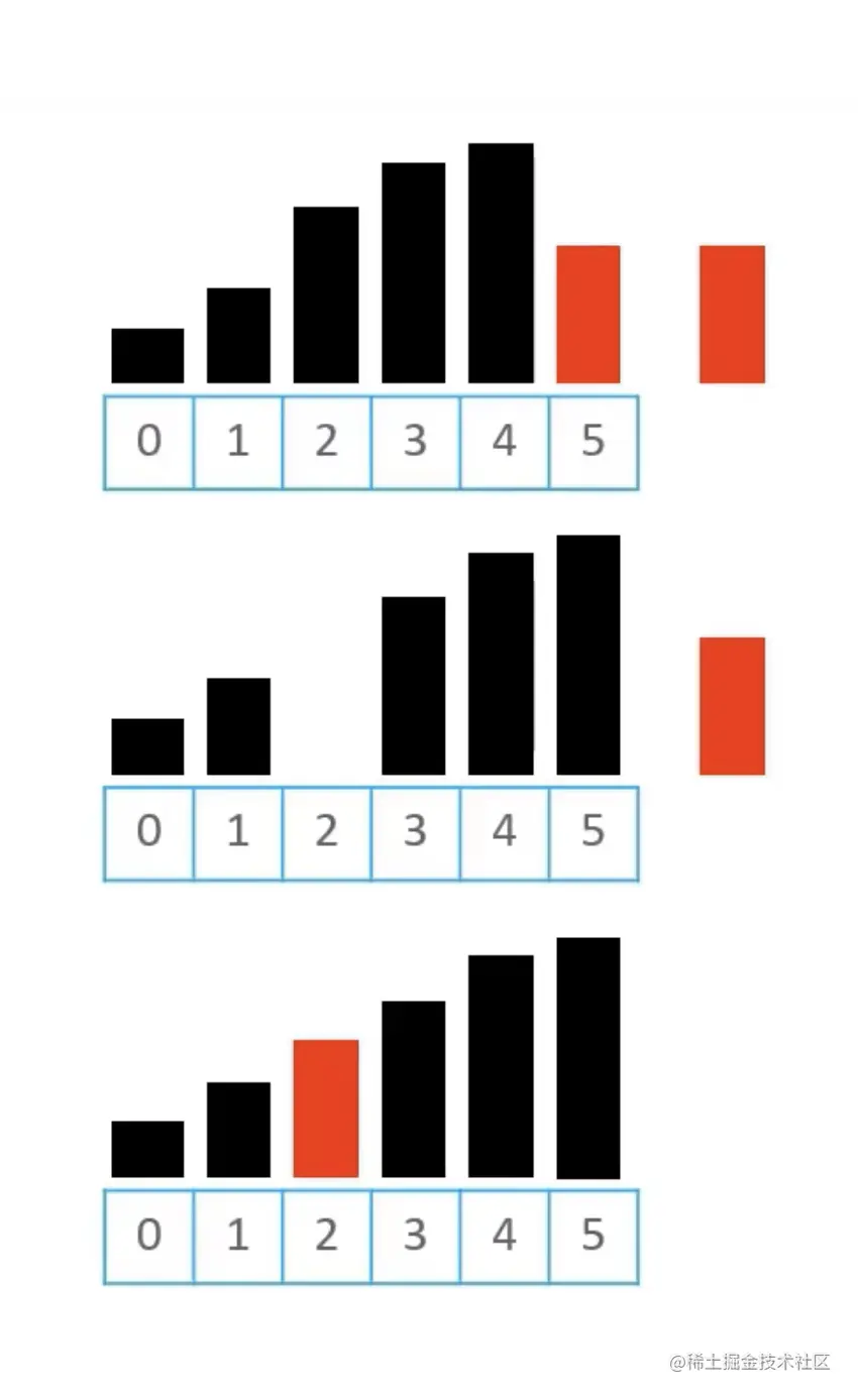 知道应该插入的位置之后,我们还需要将从该位置到尾部的数据都往后移动一位,腾出位置插入目标值。