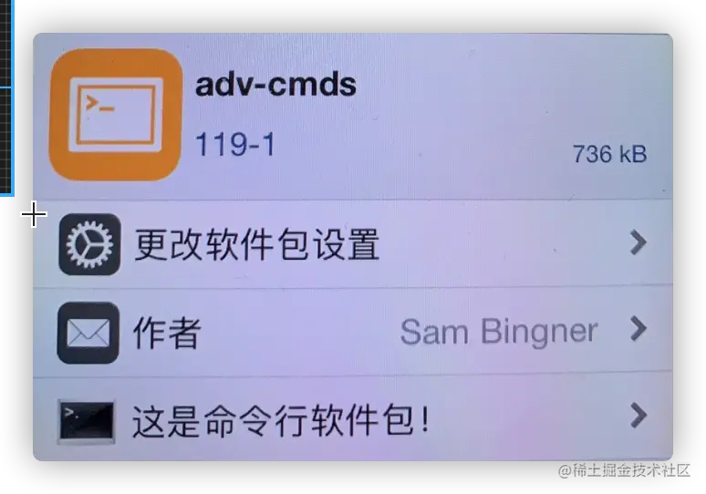 Cydia安装adv-cmds,默认情况应该是安装了的,如果没有安装需要手动的安装一下