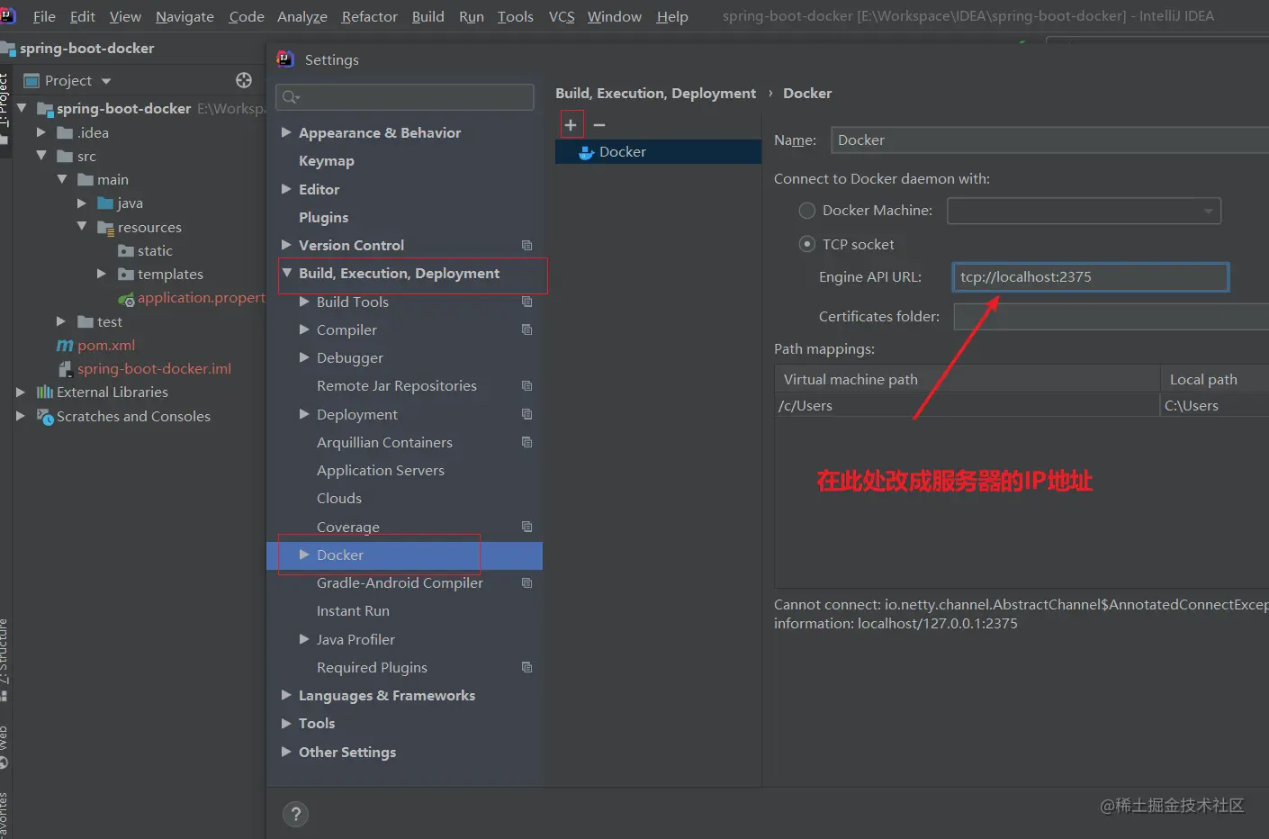 第二步:IDEA中配置Docker插件信息