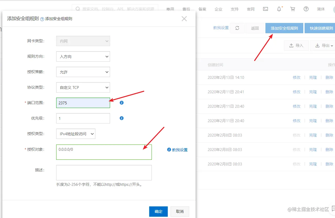 如果不能访问,那么需要在服务器的管理控制台添加安全组规则,我的服务器是阿里云的。添加开放2375端口。如下图