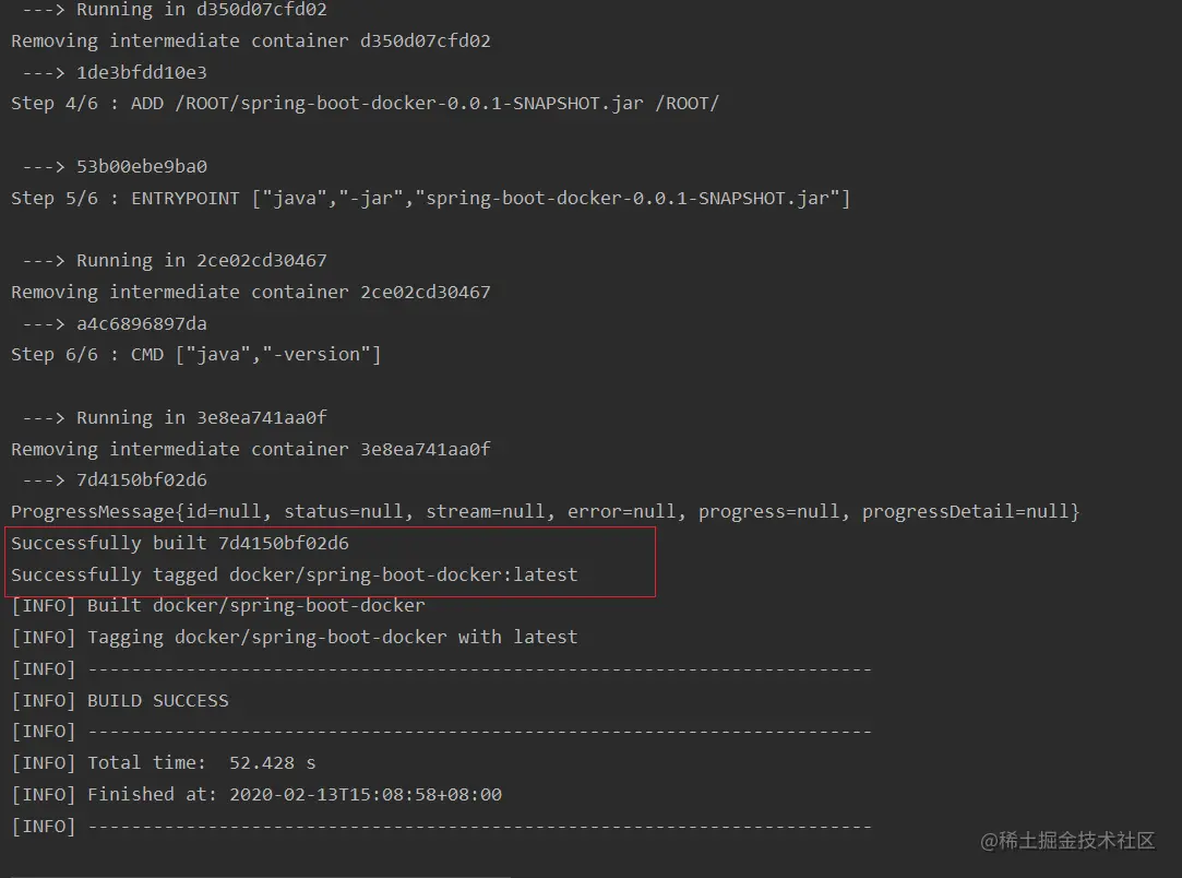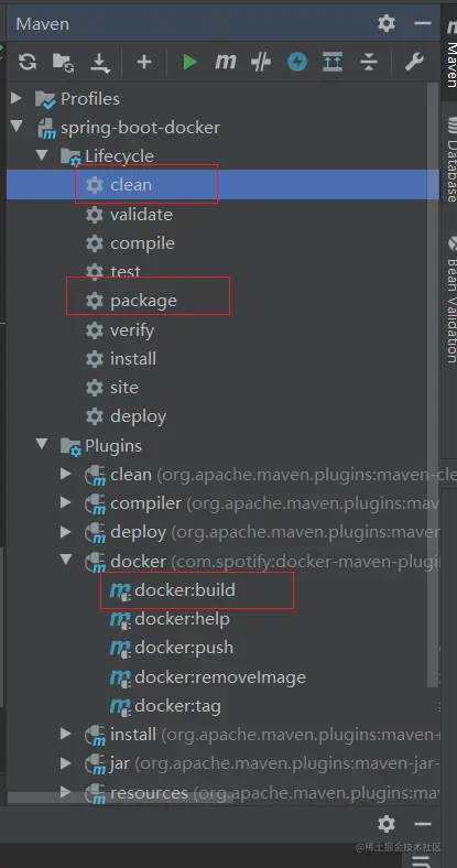 依次使用 clean、package、docker:build 命令