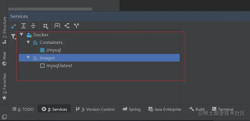 点击OK之后,下方控制栏,出现Docker控制台